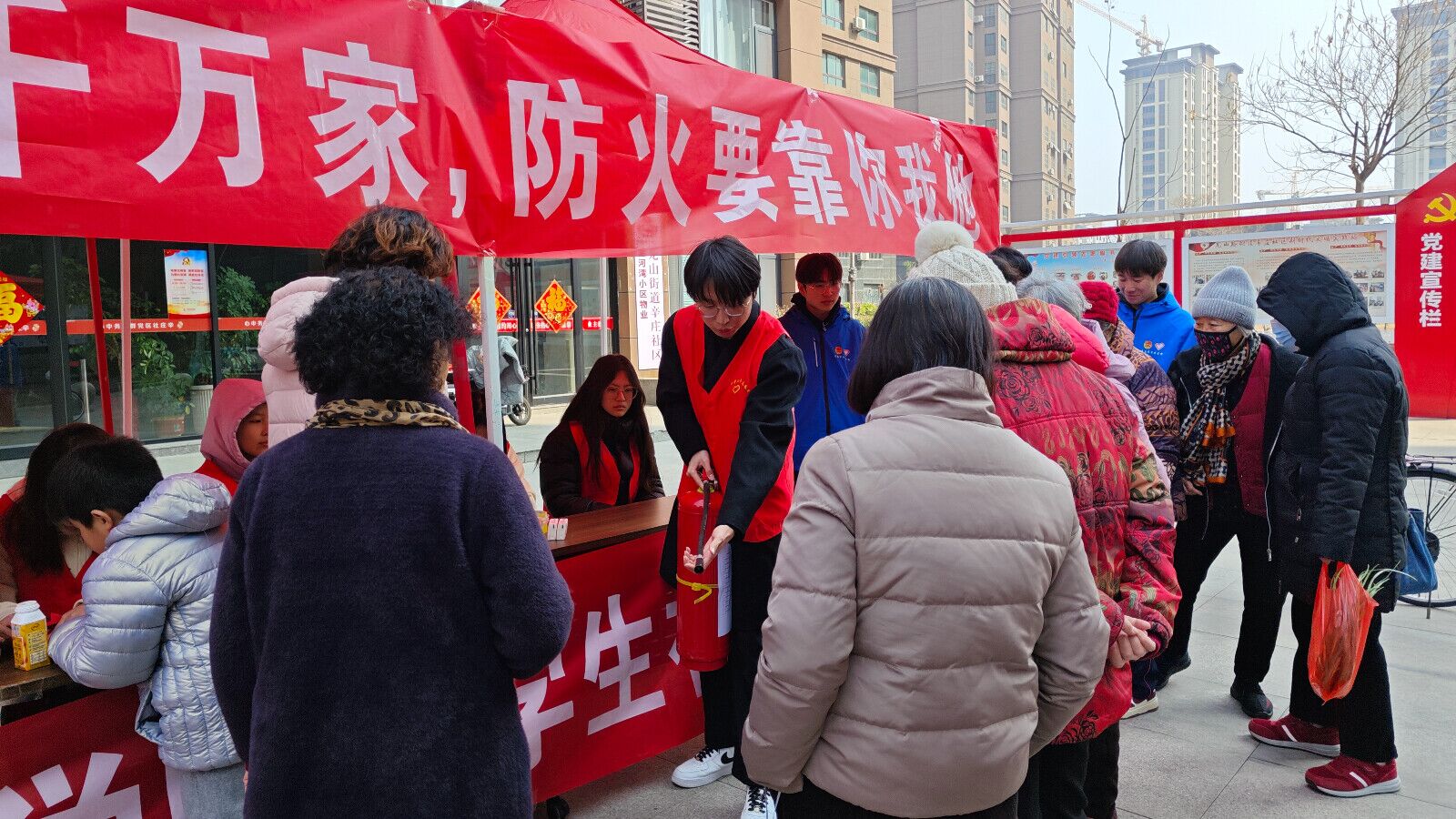 志愿者们积极向社区居民发放消防知识宣传单,现场演示灭火器的使用方法、讲解急救知识,与社区工作人员一起开展社区安全隐患大排查,清理楼道杂物,以实际行动为社区安全筑起坚实可靠的“防火墙”。