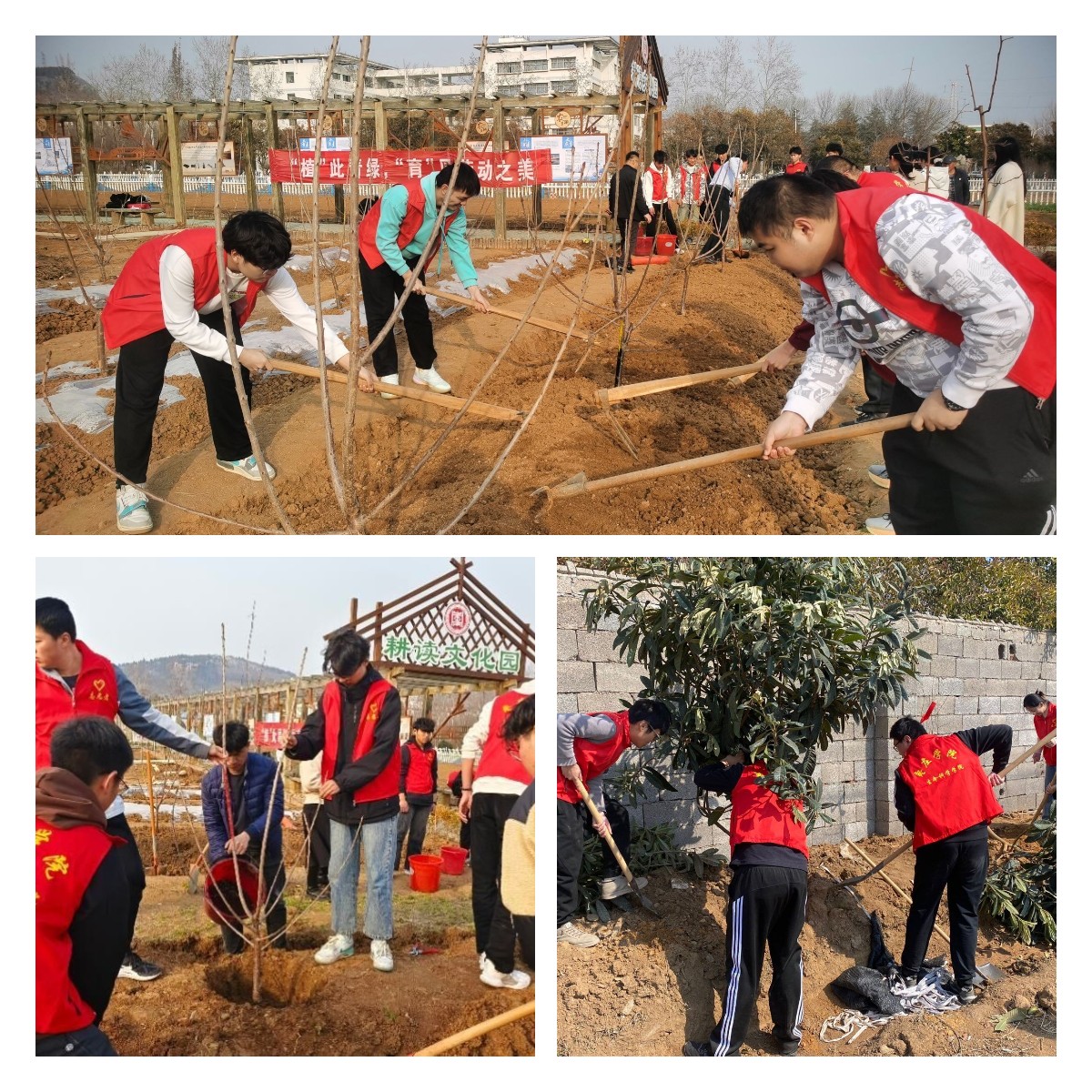 活动伊始,党总支书记郭传鑫为大家介绍本次活动的目的和意义,要求同学们要以饱满的热情和务实的作风,积极参与生态文明建设。随后,在现场老师的指导下,同学们分工协作,各个干劲十足,挥动着手中的铁锹,相互配合扶树、铲土、压土、浇水,每个步骤都有条不紊,大家干得热火朝天,整个植树现场到处是忙碌的身影,呈现出一派热火朝天的劳动景象。