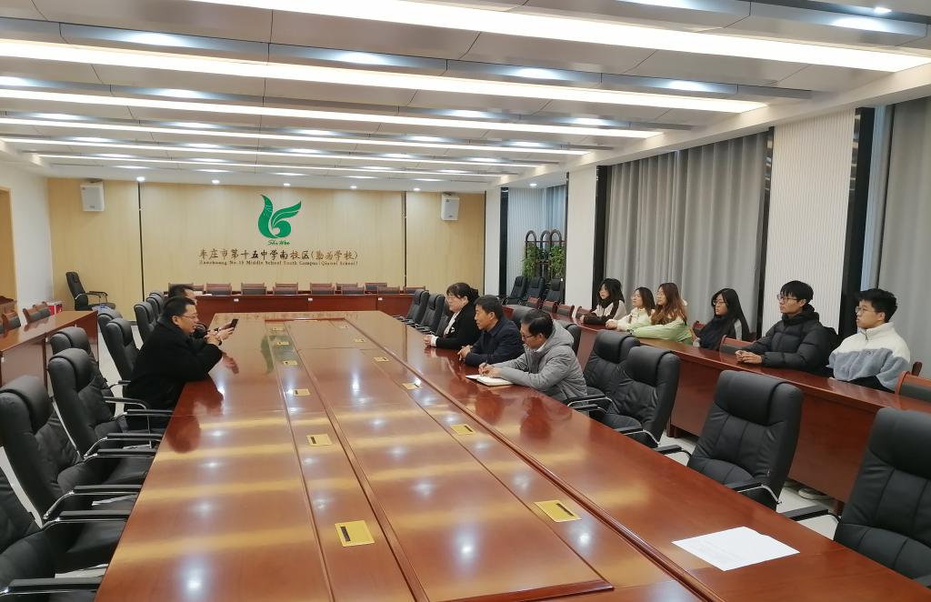 枣庄市第十五中学南校区(勤为学校)校长刘成欣、副校长刘亚伟对beat365在线唯一官网一行的到来表示热烈欢迎。刘成欣校长详细介绍了学校的发展沿革、办学规模和对实习学生工作生活等方面的安排,对实习学生吃苦耐劳、乐于奉献的精神给予高度评价。