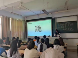 本次座谈会以“倾听与沟通”为主题,主要分为倾听艺术、沟通技巧两个部分。第一部分从繁体字“聴”字的结构入手,引出倾听应做到少说多听、善于观察、用心体察,并阐述了倾听在沟通中的重要意义。然后通过一小段简单有趣的视频归纳出倾听的方法及技巧。第二部分着重介绍了沟通的三个小技巧,即真诚,共情,尊重。此外还向心理委员们展示了多种沟通形式,并在此基础上总结了心理委员在日常工作时的沟通方法,使同学们受益匪浅。