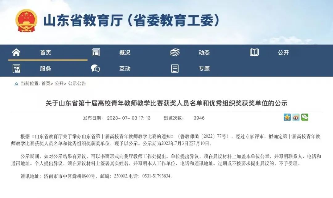 近日,山东省教育厅、山东省教育工会委员会公布省第十届高校青年教师教学比赛获奖名单,beat365官网青年教师李媛媛在全省151所高校、600余名教师中脱颖而出,从教学设计到教学展示再到教学反思,得到评委老师的一致好评,最终喜获一等奖。