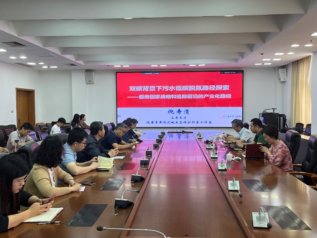 倪教授首先向参会师生详细介绍了厌氧氨氧化技术的原理以及在国内外污水处理中应用情况,并在报告中指出,在国内“双碳”背景下,厌氧氨氧化已成为污水厂低碳脱氮的首选技术,具有广阔的市场前景和无限的应用空间,是名副其实的负碳技术。随后倪教授又对其科研团队人员组成、研究方向以及近期取得的研究进展进行了介绍。报告结束后,倪教授与师生进行了互动,对部分师生提出的问题进行了耐心细致解答。