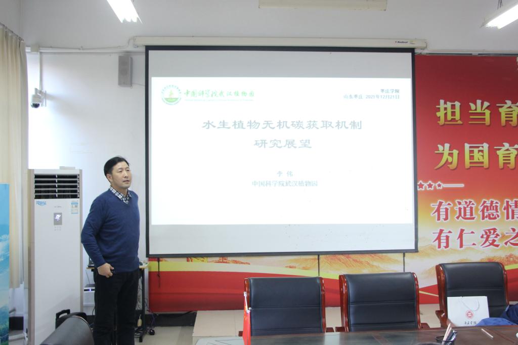 聘任仪式结束后,李教授作了题为《水生植物无机碳获取机制研究展望》的学术报告。结合科学实践中鲜活生动的案例,李教授深刻阐释了创意、创意思维及自我认知,沉水植物的光合碳浓缩机制研究等内容。报告饱含科学实践经验,内涵丰富,观点新颖,对师生更好地理解水生植物光合碳同化途径的起源、进化以及生态适应性具有重要指导意义。李教授还勉励师生要脚踏实地、推陈出新,善于在科学实践中发现问题。