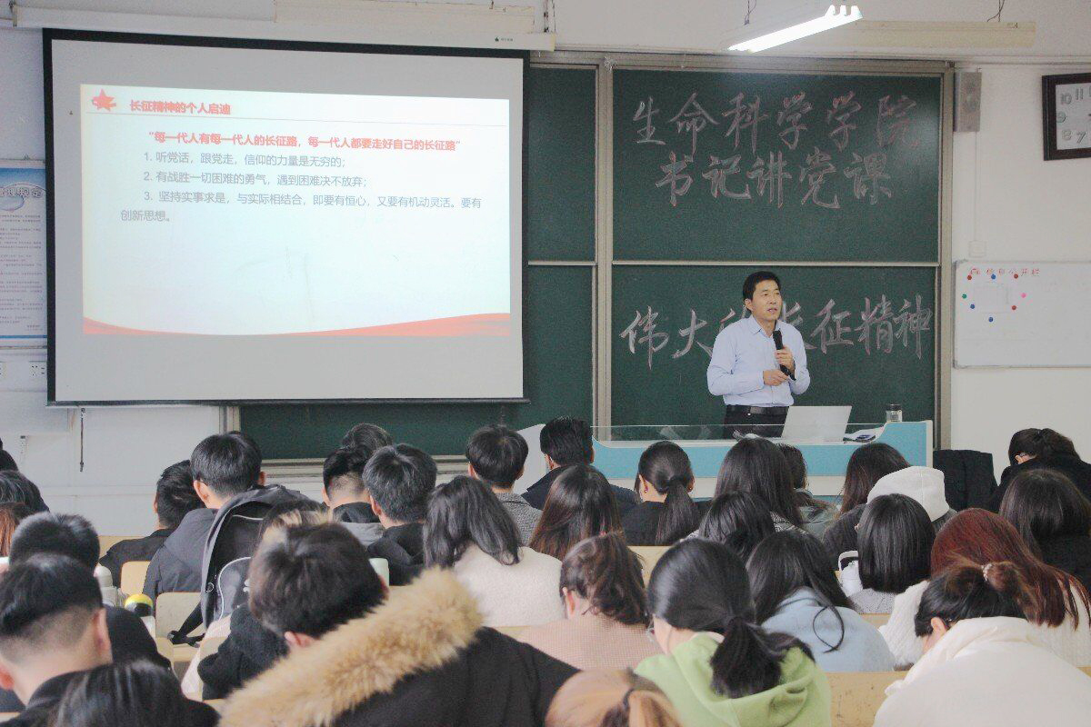 11月17日,beat365在线唯一官网党总支书记郭传鑫以《伟大的长征精神、永恒的英雄史诗》为主题为全体教师、学生党员上了一堂精彩党课。党课采用了图文并茂的形式,讲述了血战湘江、遵义会议、四渡赤水、巧渡金沙江、强渡大渡河、飞夺泸定桥、爬雪山过草地、胜利会师等历史事件,用一组组数据和一个个感人事迹展示了红军战士在长征途中坚定跟党走,用生命和鲜血写下的不朽传奇。并即兴朗诵了毛主席在长征中所作的《七律·长征》、《清平乐·六盘山》、《忆秦娥·娄山关》等诗词,让我们领略了伟人的革命乐观主义精神和博大胸怀。并提出要学习和领会长征精神的真谛,不断汲取长征精神的丰富营养,坚定听党话,跟党走的信念。