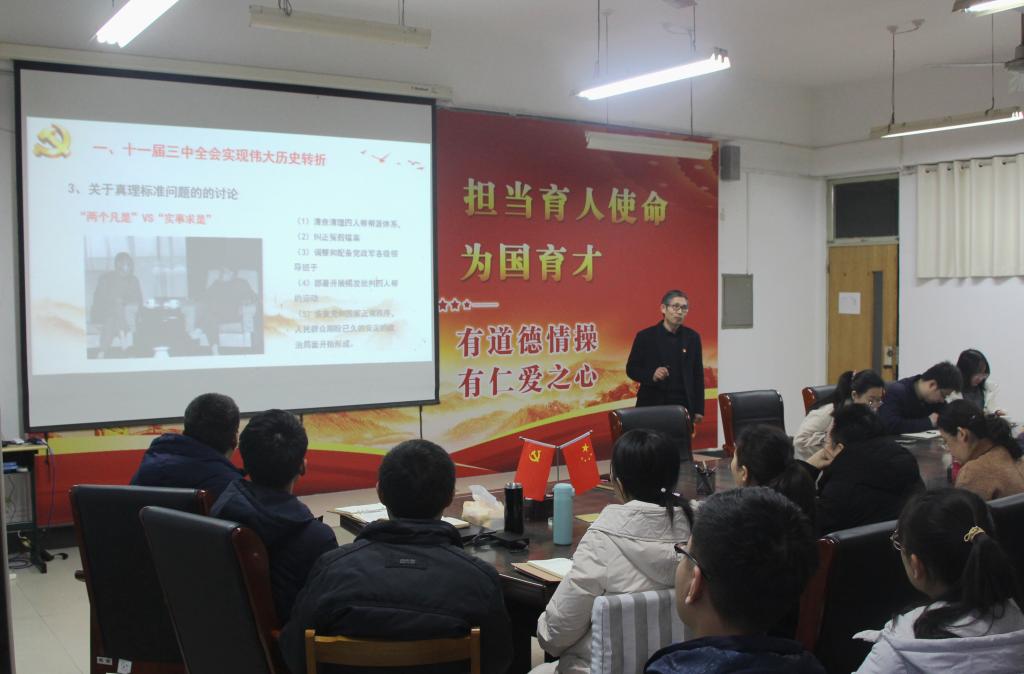 12月15日,副院长王玉海为全院党员作题为《弘扬改革开放精神、勇作改革创新的排头兵》专题党课。党课对改革开放精神的内涵进行了深刻解读,并希望大家在工作学习中发扬开拓创新、勇于担当、开放包容、兼容并蓄的精神品格,解放思想,实事求是,努力工作。