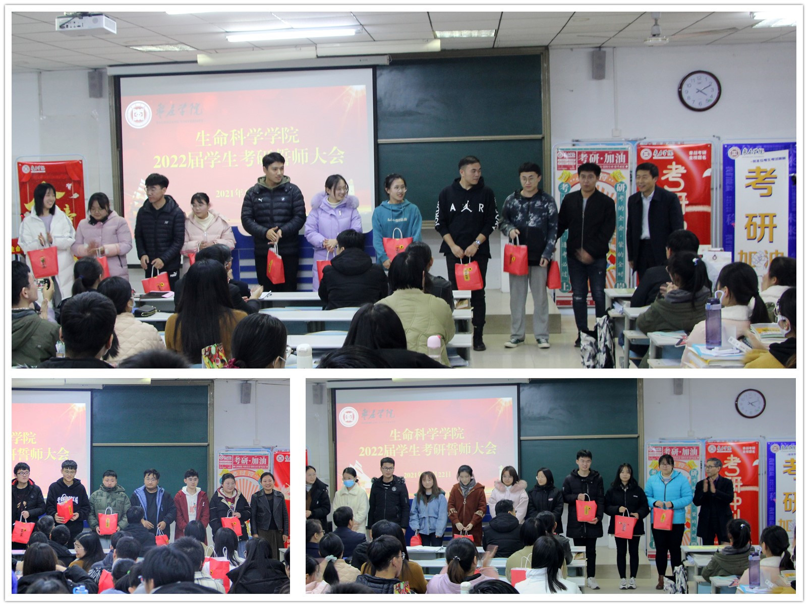 大会上,播放了来自在校生学弟学妹以及往届考研成功学长们的加油视频,李志军同学代表在校生送上对考研学子最真挚的祝福,崔荣慰同学代表全体考研学子感恩学校的培养与关怀,前院学生会主席杨深琳同学带领全体考研学子进行了慷慨激昂的宣誓,表示一定不辜负家长期盼,恩师厚望,勇往直前,决胜考场。