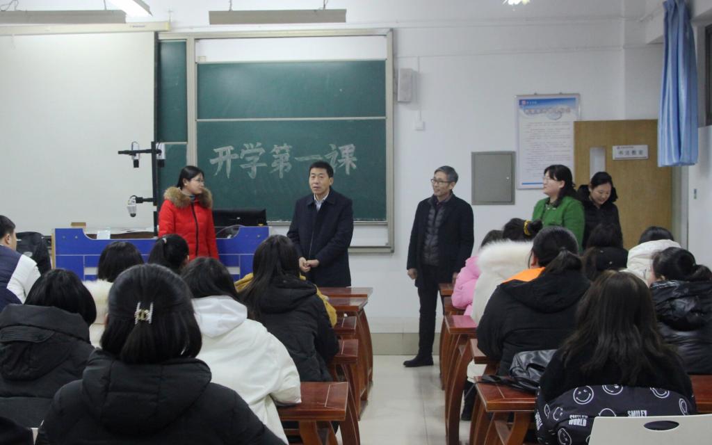 新学期,新气象,新起点。为加强疫情防控教育、安全教育,弘扬爱国主义精神,做好新学期开学各项工作,beat365在线唯一官网于2月20日晚上召开了各年级新学期“开学第一课”主题班会。学院党政领导深入教室看望全体同学。