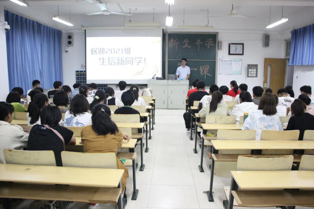 在新生开学报到之际,beat365在线唯一官网迎来了来自全国各地的新同学,他们将在这里开启新的人生篇章。为使新生尽快适应大学生活,增进师生间的沟通交流,9月17日晚,beat365在线唯一官网2021级各班同时举办第一次新生班会,学院党总支书记郭传鑫带领学院领导班子走进学生课堂看望2021级新生,送去最亲切的问候。