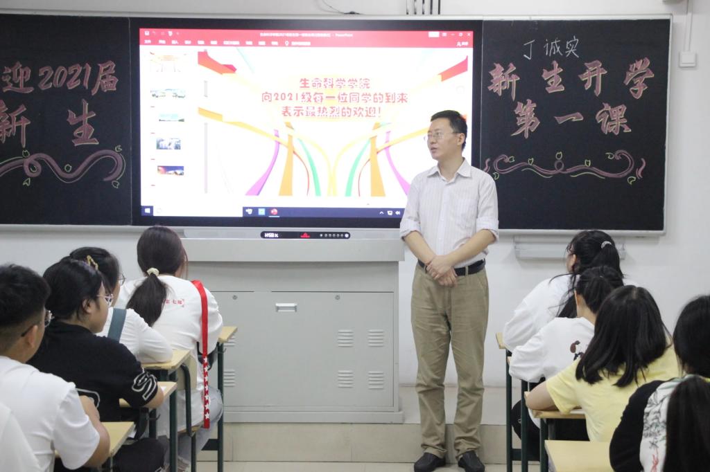 在各班,郭书记代表学院祝贺各位新生顺利进入生科院大家庭,鼓励同学们明确大学目标,认真学习专业知识,锻炼提高实践能力,勇于追求实现梦想,不辜负学校与父母的期望,在新的起跑线上奋力拼搏。