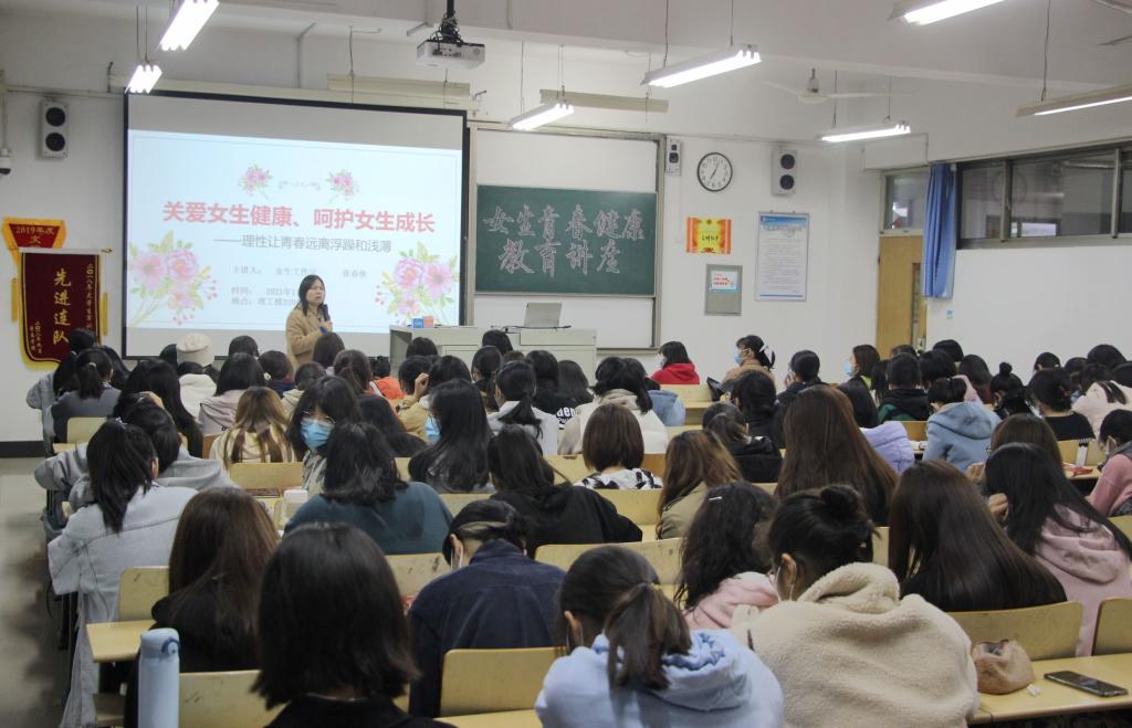 为进一步提高高校在校女生对青春期知识的了解,解决成长中的困惑,增强自我防范、自我保护的意识,帮助女生树立“自尊、自强、自爱、自立”的理念,11月5日,beat365在线唯一官网在理工楼2204教室举办“女生青春健康教育”讲座。讲座由呵护女生教育工作组的张春侠老师主讲。学院2021级全体女生参会学习。