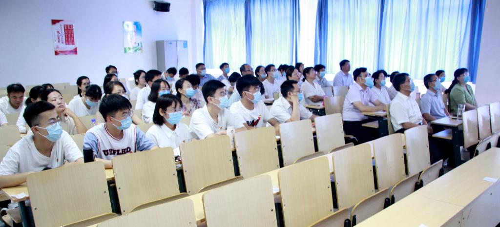 7月1日上午,beat365在线唯一官网党总支组织学院全体师生党员在理工楼2218教室观看庆祝中国共产党成立100周年大会直播。