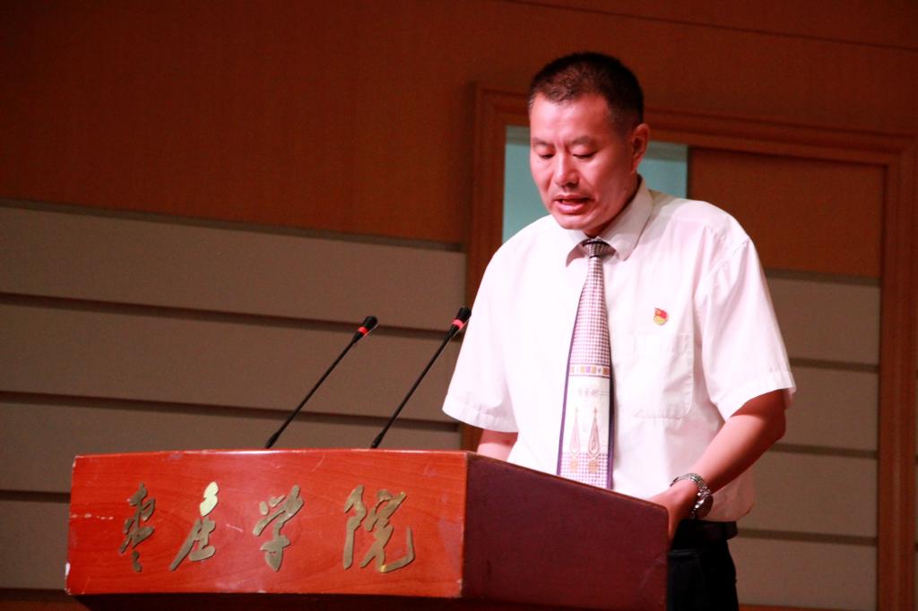 家长代表耿光跃他代表全体家长对学校、学院致以崇高的敬意和感谢。他回顾毕业20年认真工作,踏实做人,成就自己,造福社会的工作经历,并希望同学们毕业后勿忘母校和恩师,感恩生活,珍爱生命,怀着一颗感恩的心回馈社会,回馈母校。