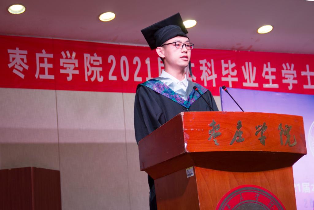 最后,副处级组织员陈原国发表了讲话,陈原国首先向圆满完成学业的2021届本科生表示祝贺,并提出三点希望:一是顺境不惰,逆境不馁;二是始终不忘初心,坚守信念;三是大家都能保持一颗平凡和敬畏的心。希望同学们走出校园,能继续秉承“兼爱、尚贤、博物、戴行”的枣院校训和“物承生命,生生不息,向上向善,求真务实”的生科精神,阔步迈向更加精彩的人生历程,鹏程万里,前程似锦!