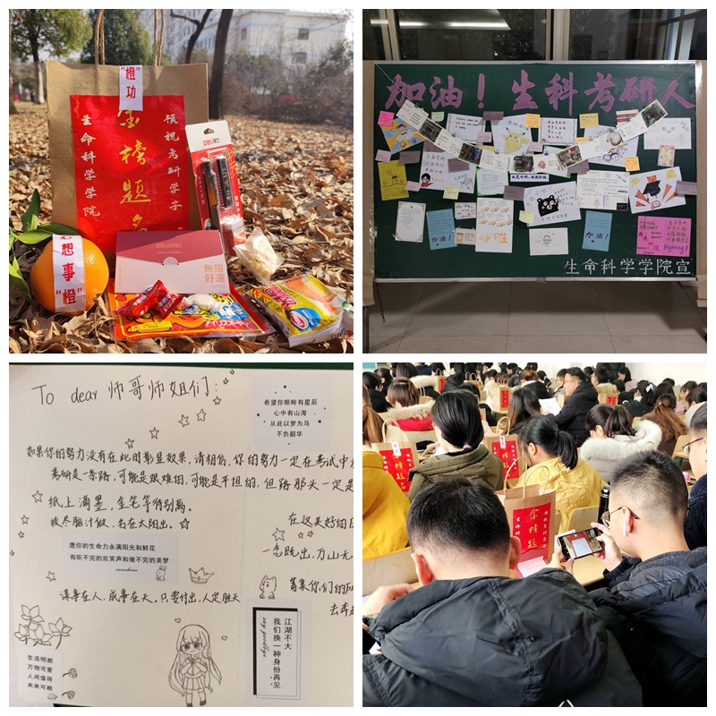 随后,参会领导老师们将一个个助力礼包递到考研同学们手中,同时也送上了一句又一句温暖的祝福语,给他们加油鼓劲。礼包内装着考试所用到的文具、代表“心想事橙”的橙子以及有美好寓意的小礼品,发放礼包现场一片欢声笑语,其乐融融。