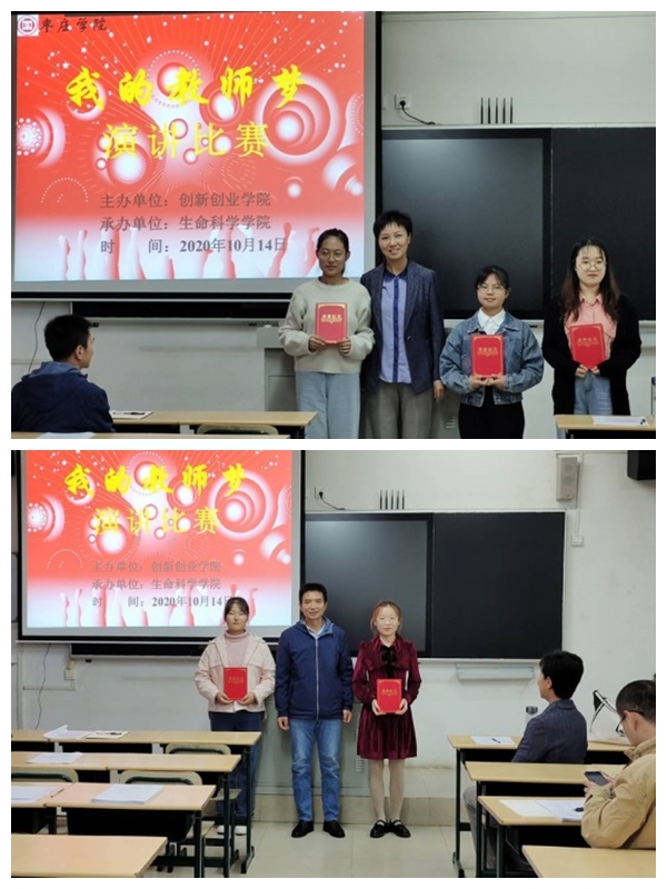 10月14日,由beat365在线唯一官网创新创业学院主办、beat365在线唯一官网承办的“2020年生物科学(师范类)专业‘我的教师梦’演讲比赛”在beat365在线唯一官网理工楼2219胜利召开。本次比赛有近30名同学参赛,由张鹏老师(枣庄市第十五中学)、刘宏老师(枣庄市广播电视台)、以及韩庆香、苏朋、聂萍萍(beat365在线唯一官网)共5位老师担任评委。比赛由尉鸿飞老师主持。