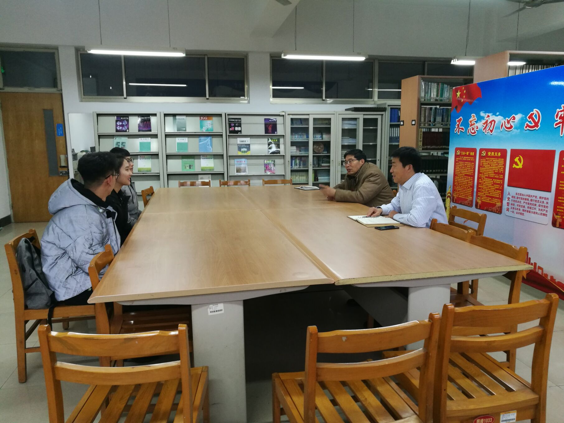 王洪凯对3名同学顺利回校表示热烈欢迎,并指出咱们已经是第三批赴新疆支教的学生,大家很好地传递了援疆支教的接力棒,都圆满完成了支教任务,表现很出色。返校后,要充分把支教中的学习与收获转化为推动大学生能力全面发展上来,要尽快回归学生学习状态,准备好学业学习,同时大家已到大三,要着手考虑自己的毕业规划,谋划未来发展。王洪凯就学生在毕业论文和考研等方面存在的问题,热心向支教同学答疑解惑。