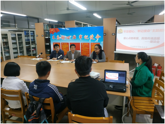 按照学校“不忘初心、牢记使命”主题教育工作安排与要求,11月7日,beat365在线唯一官网党总支在理工楼2221资料室组织开展了“不忘初心、牢记使命”主题教育爱心点燃希望、真情传递温暖座谈会。