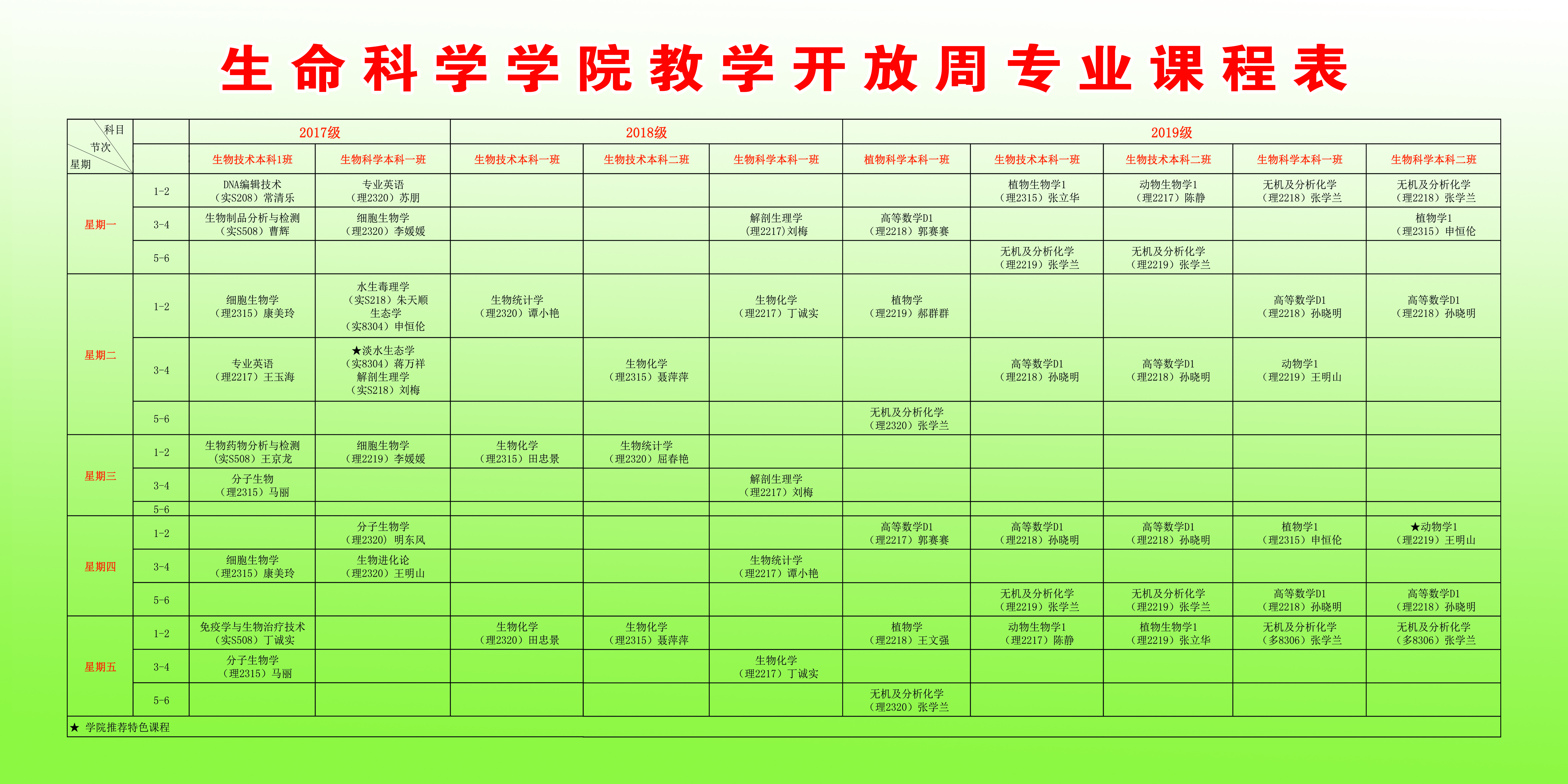 根据学校《关于开展2019-2020学年第一学期期中教学工作检查的通知》要求,beat365在线唯一官网教学开放周各专业课程安排如下: