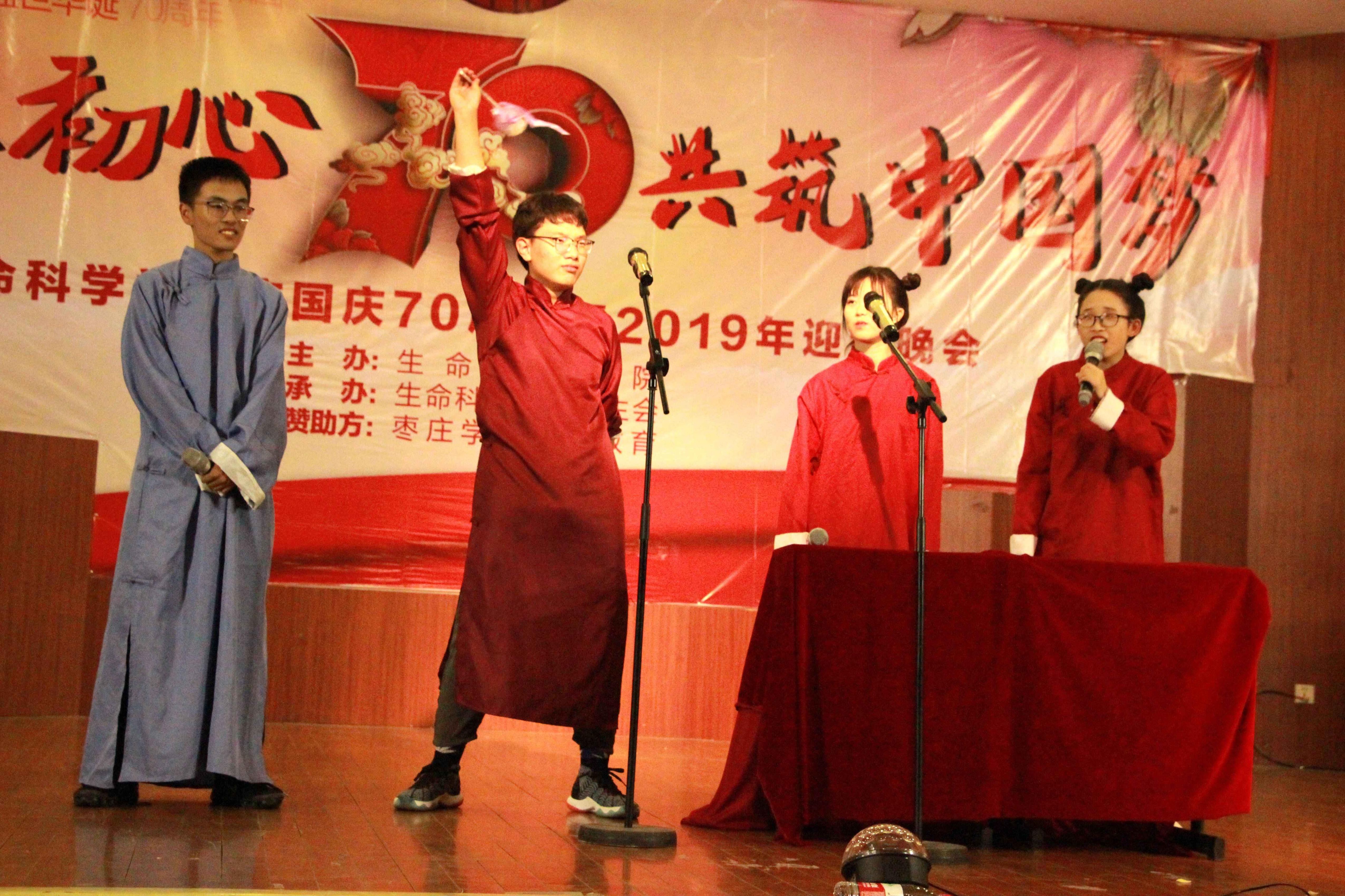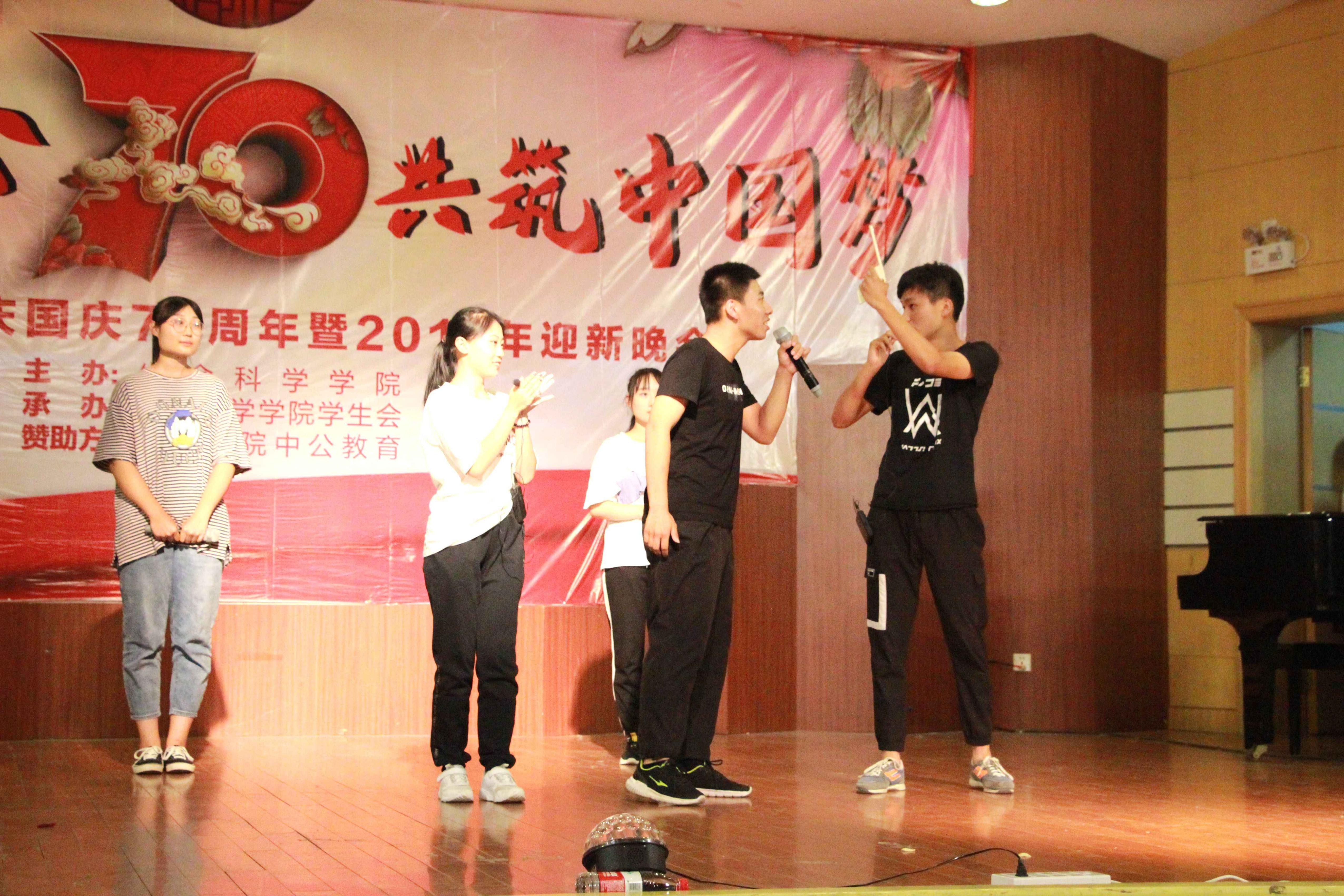 本次迎新晚会有朗诵、相声、小品、歌舞等十余个节目,不少节目突出了家国情怀主题,节目类型丰富多彩、原创性强,还有老师和同学们互动的小游戏穿插其中。最后,由十五名新疆支教归来的2016级同学为师弟师妹做了赠言,以自身经历激励新生,表达了对2019级新生的美好祝愿,让晚会进入高潮。