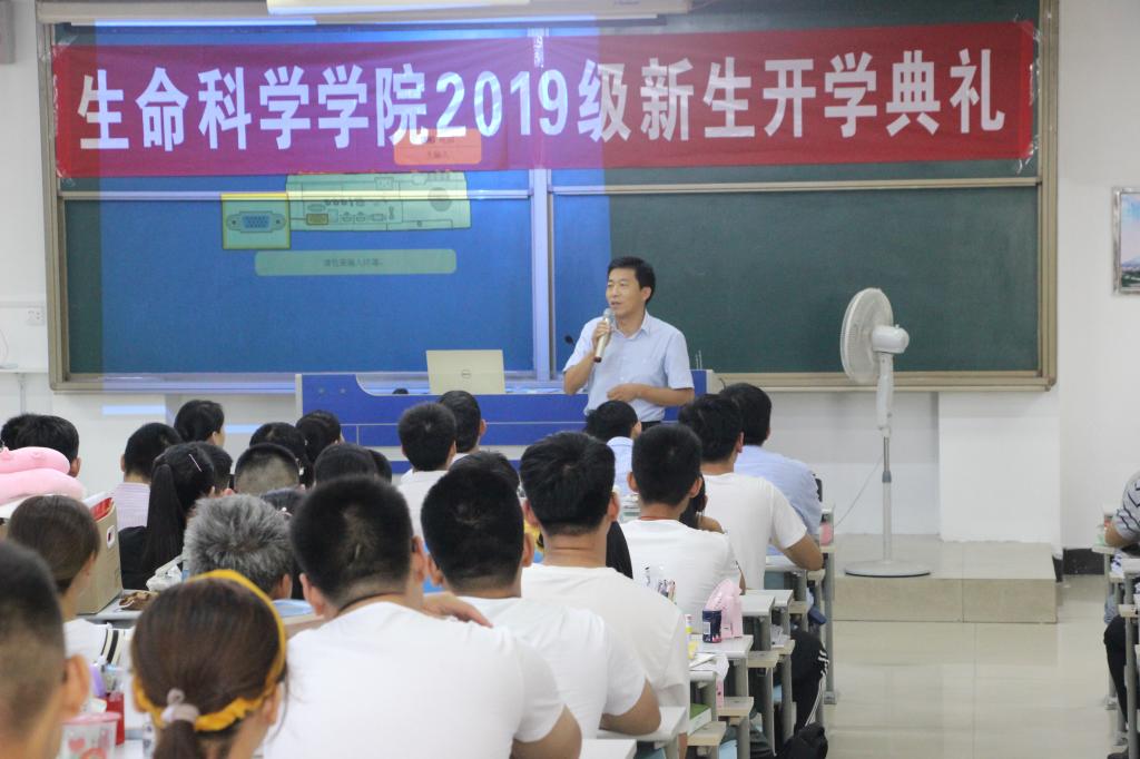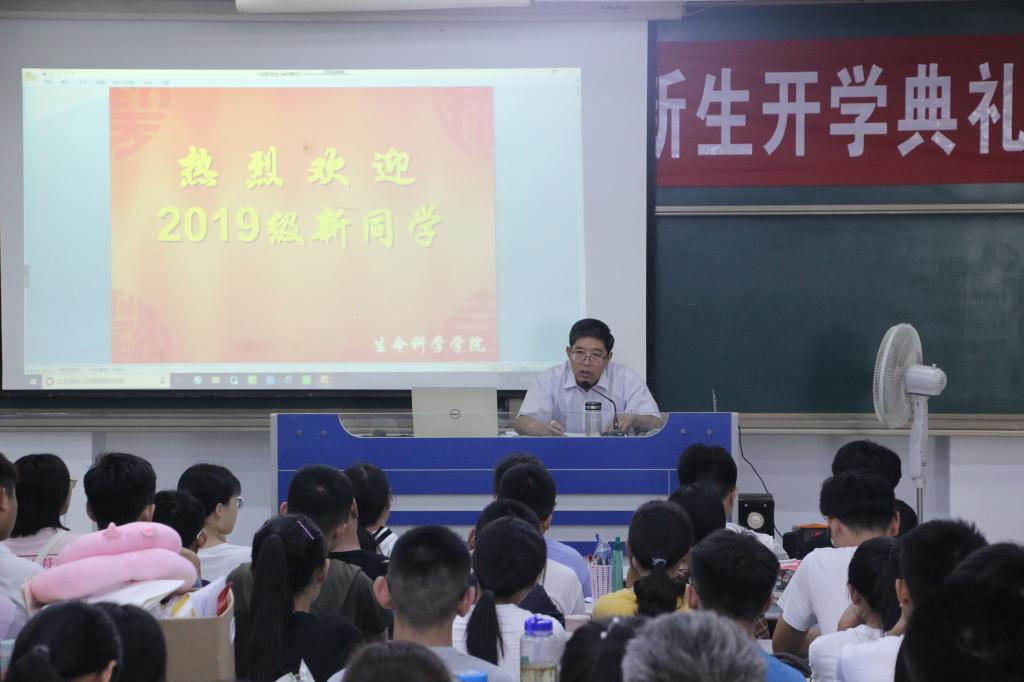 会议首先隆重介绍了学院出席会议的各位领导、教授博士老师,让同学们初步了解学院的师资情况。接着,党总支书记郭传鑫用简洁而有深刻含义的三个小故事,向同学们传达了有梦想,去坚持,就能创造奇迹的信念。最后,由院长王洪凯为同学们做了“了解生命科学,学习生命科学”的主题报告,详细为同学们讲解了beat365在线唯一官网的历史成就,生物科学与生物产业,生命科学的发展前景,以及生命科学专业学生的应该具备的学习素养。