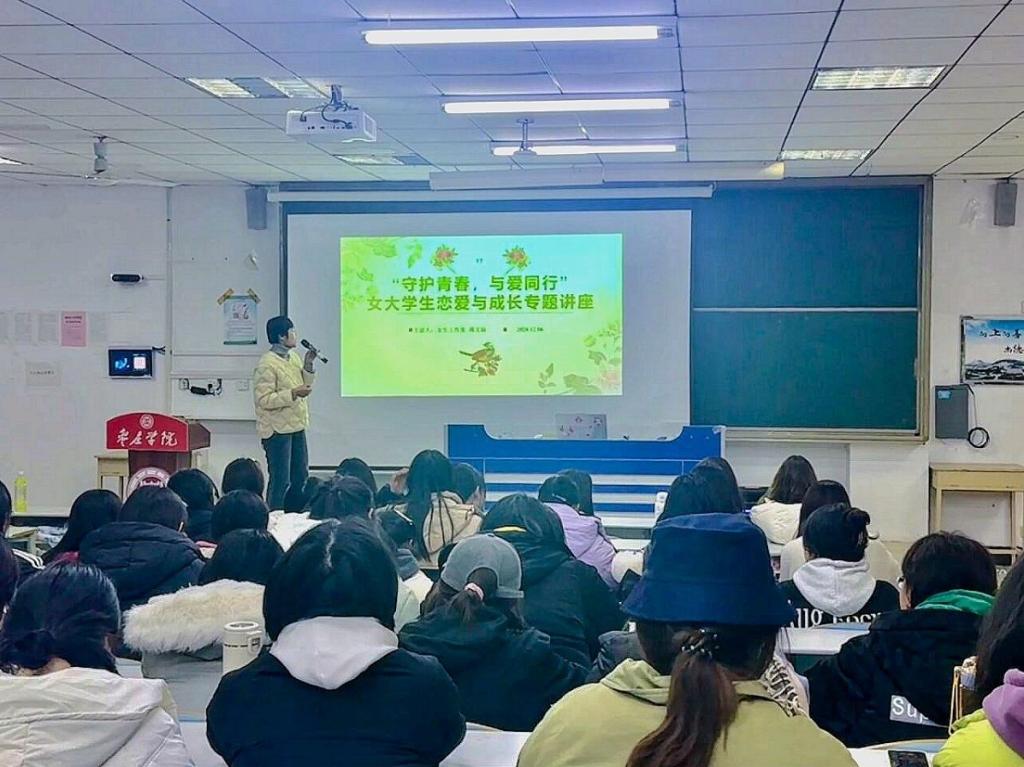 为帮助beat365官网学生树立正确恋爱观,纾解大学生恋爱情感上的困惑与问题,宣传大学生恋爱健康知识。12月6日晚,beat365在线唯一官网邀请周文灿老师为beat365官网2024级全体女生开展“守护青春,与爱同行”女大学生恋爱与成长专题讲座,此次讲座由2024级全体女生参加。
