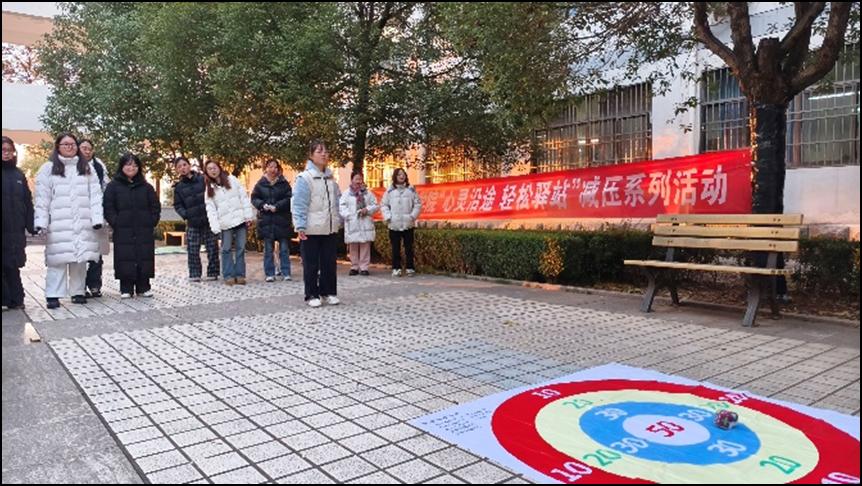 11月25日,在理工楼2317教室和理工楼下开展了"心灵沿途轻松驿站"减压活动。减压活动在“桃花朵朵开热身游戏”中拉开帷幕,活动现场设有多个趣味游戏区,包括投沙包、指压板挑战、乒乓球、踢毽子、跳绳等。同学们在游戏中尽情欢笑,释放了学习和生活中的压力。