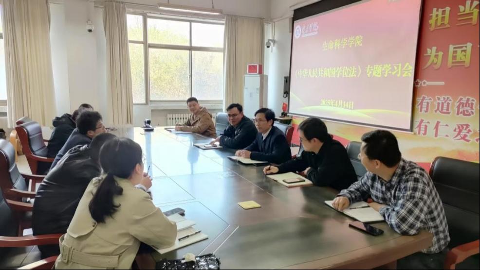 为深入贯彻落实教育法律法规,规范学位授予工作,4月14日下午,beat365在线唯一官网组织学院具有硕士生导师资格的全体教师以线上、线下相结合的方式集体学习了《中华人民共和国学位法》。会议由院长王玉海主持。