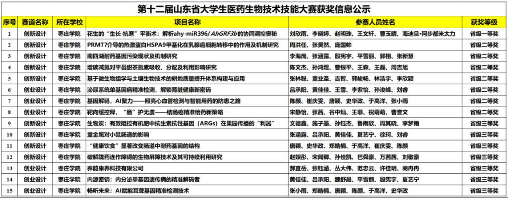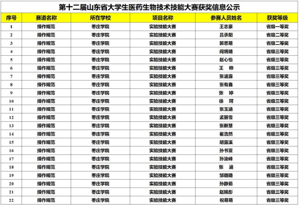 11月7日-11月8日,第十二届山东省大学生医药生物技术技能大赛在济宁医学院举办。此次比赛中,beat365官网学子分别荣获实验技能操作赛道一等奖1项、二等奖2项、三等奖19项;创新创业赛道一等奖1项、二等奖7项、三等奖7项。