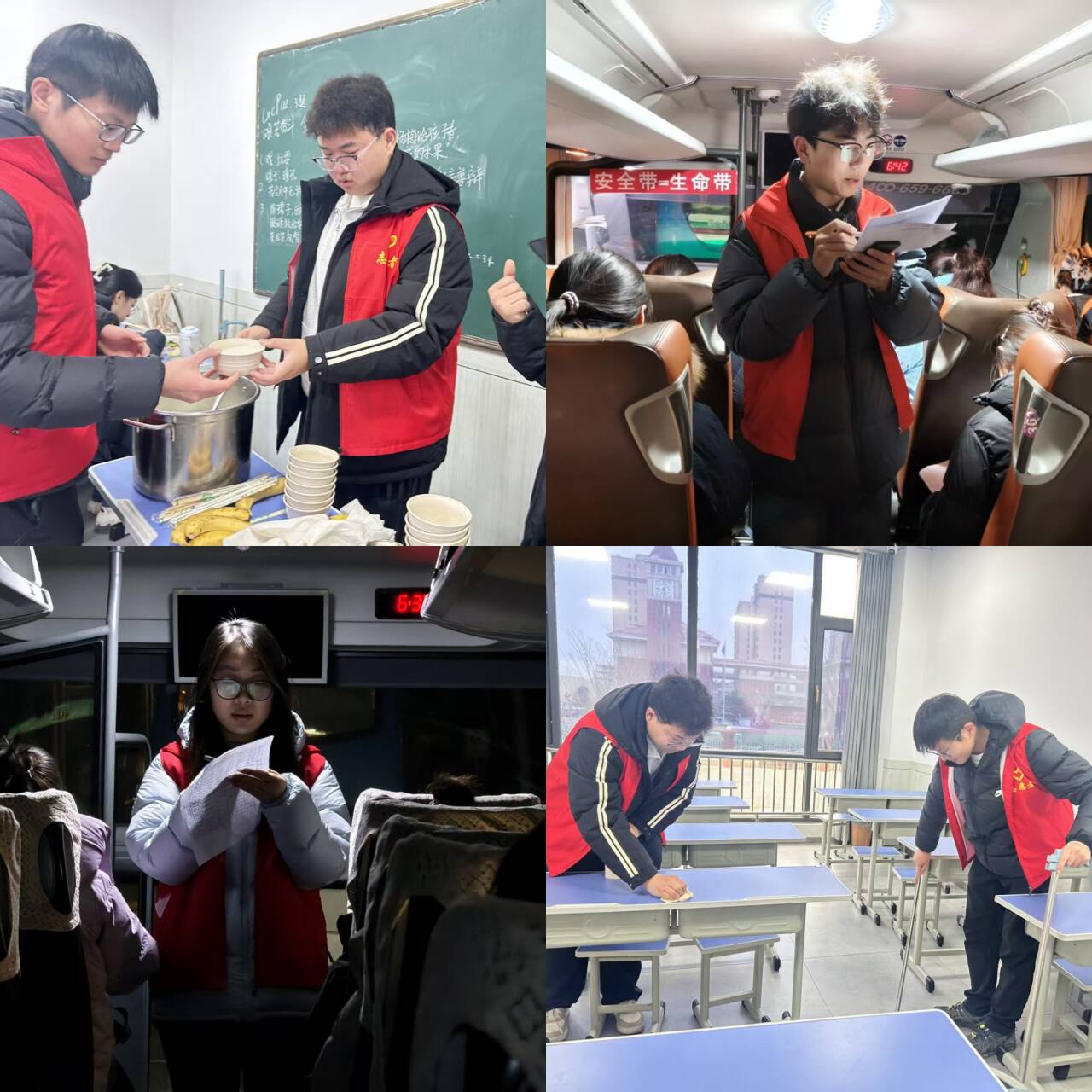 考研期间,党员师生从全程跟车服务到组织就餐,从常规热水、药品供应到应急物资储备,全方位保障考生需求。针对午间就餐问题,精心准备了荤素搭配均衡的套餐。面对部分考生的焦虑情绪,通过谈心交流鼓励引导,让考生切实感受到“学院在身边”的陪伴与关怀。