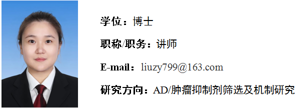 刘孜育,女,中共党员,2022年3月毕业于日本东京医科齿科大学/理化学研究所(RIKEN)生命理工医疗科学专业,获理学博士学位。2024年8月进入beat365在线唯一官网工作。主要从事阿尔茨海默症和肿瘤抑制剂筛选及其相关机制研究。近年来以第一作者及共同作者身份在《Journal of Biological Chemistry》、《Oncology Research》、《Frontiers in Aging Neuroscience》等学术期刊发表论文。