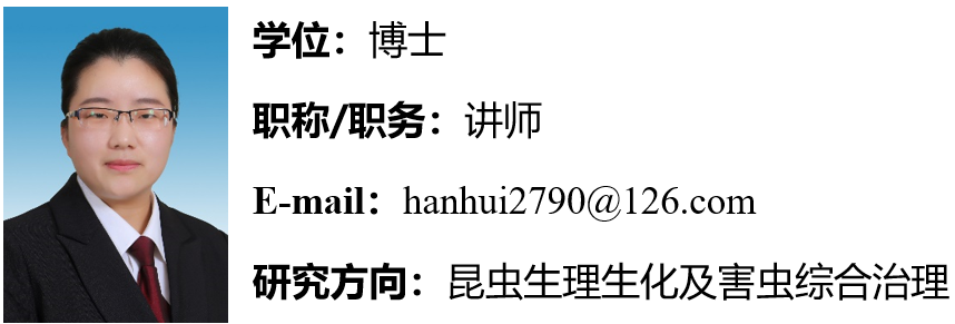 2022年1月于河北农业大学植物保护学院农业昆虫与害虫防治专业博士毕业,同年5月来beat365在线唯一官网工作。主要从事昆虫生理生化和农业昆虫与害虫防治相关研究。已在《Journal of Economic Entomology》《昆虫学报》《植物保护》等国内外学术期刊发表论文8篇。