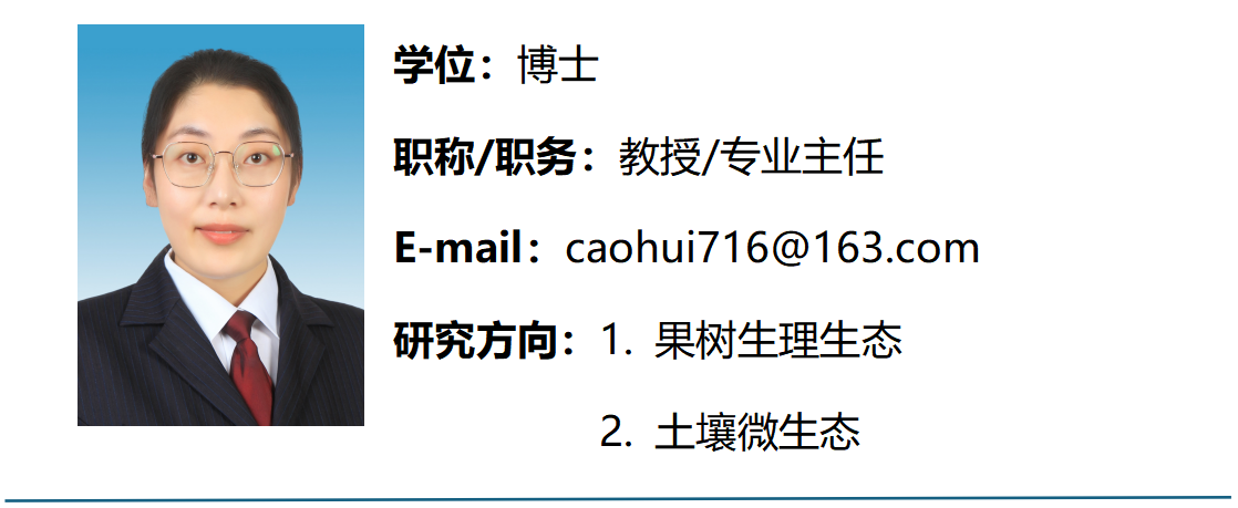 [1]曹辉(1/1),增碳减氮调控苹果根系氮素吸收利用的微生物机制(32202421),国家自然科学基金委,国家自然科学基金青年项目,2023.01-2025.12,30万元,主持。