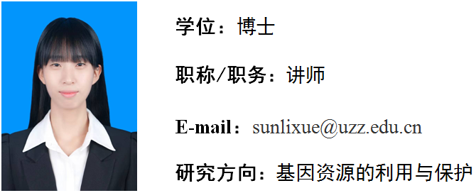 孙丽雪,女,2023年1月毕业于复旦大学植物学专业获得理学博士学位。2024年11月进入beat365在线唯一官网工作。主要从事基因资源的利用与保护的相关研究。近五年来以第一作者或者共同作者在《Biology》、《Physiologia Plantarum》等刊物上发表SCI论文2篇。