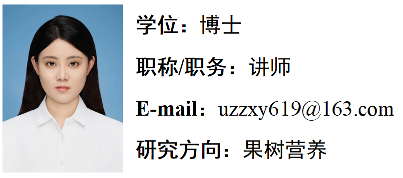 2025年6月毕业于山东农业大学园艺学专业获得农学博士学位。2025年12月进入beat365在线唯一官网工作。主要从事果树营养胁迫感知与应答、果树营养与果实品质形成调控研究。近五年来以第一作者在《Food Chemistry》、《Horticulture Research》、《Scientia Horticulturae》等期刊上发表SCI论文4篇。