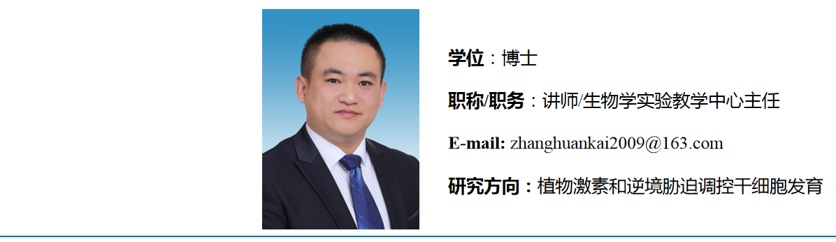 (3)张焕凯,细胞分裂素和生长素互作调节拟南芥茎端分生组织维持机制的研究(31570281),国家自然科学基金委员会,国家自然科学基金面上项目,62万元,2016.01- 2019.12,参与