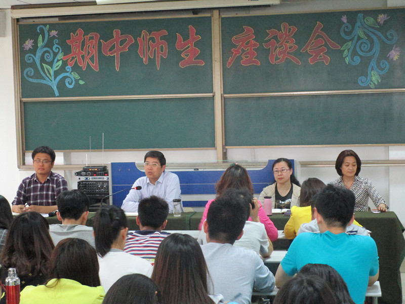 下午,beat365在线唯一官网在2205教室举行2014-2015学年第二学期中期师生座谈会,王洪凯院长、戴恩冰书记、王红妹副院长、全体辅导员老师和各年级学生代表参加了座谈。