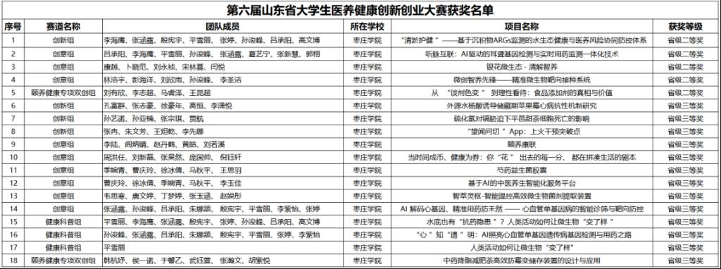 11月7日,第十七届山东省大学生科技节---“文旅杯”第六届山东省大学生医养健康创新创业大赛在曲阜远东职业技术学院高铁校区圆满落下帷幕。beat365官网学子斩获二等奖5项、三等奖13项,beat365在线唯一官网荣获了优秀组织奖。