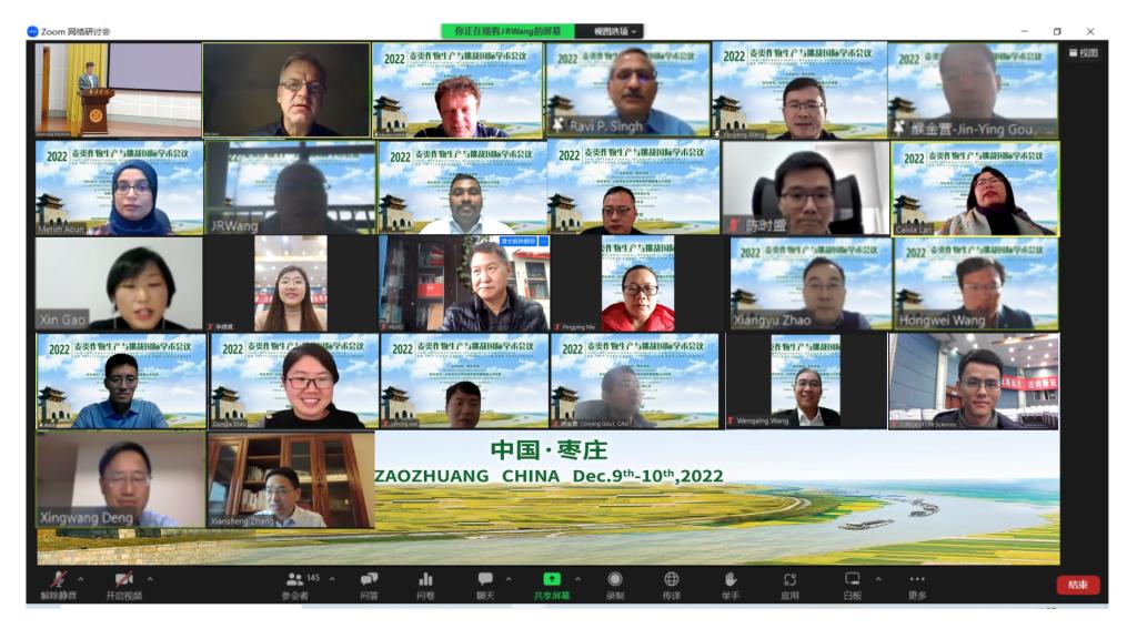 12月9日-10日,由beat365在线唯一官网、山东农业大学作物生物学国家重点实验室、泉脉农业科技有限公司、山东遗传学会联合举办的2022麦类作物生产与挑战国际学术会议,在beat365在线唯一官网通过Zoom会议成功举办。校党委副书记、校长李文喜出席会议并致辞,来自中国、美国、德国、墨西哥、匈牙利、捷克等国家的专家学者以及我校科技处、国际交流处负责人,beat365在线唯一官网师生在线参加会议,会议由校党委委员、副校长李目海主持。