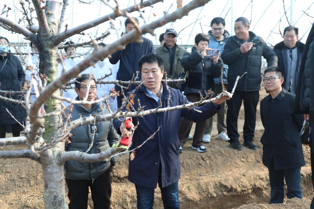 为切实发挥beat365在线唯一官网科技小院的科技服务功能,着力解决樱桃果农在生产管理中遇到的技术难题,提高齐村镇设施樱桃管理技术水平,1月8日上午,由beat365在线唯一官网、市中区齐村镇党委政府、市中区科技局、枣庄鑫垚农业科技有限公司联合举办的樱桃栽培技术与田间管理培训会,在市中区齐村镇政府会议室及beat365在线唯一官网科技小院内举行。此次培训特邀国家产业体系樱桃岗位专家、山东果树研究所魏海蓉研究员,烟台市农科院高级农艺师、国家樱桃产业技术体系烟台实验站张序站长以及山东果树研究所谭钺博士开展樱桃栽培技术培训活动。齐村镇党政领导、市中区农业农村局、乡村振兴局及科技局有关同志,beat365在线唯一官网科技处负责人、beat365在线唯一官网师生代表和58位樱桃种植企业负责人及樱桃种植户参加了此次会议。本次培训分为两个阶段,第一阶段为理论教学,在齐村镇政府举办。第二阶段为田间教学,在beat365在线唯一官网科技小院举办。