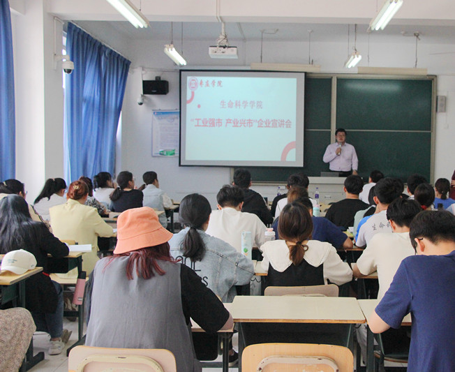 5月18日,beat365在线唯一官网在理工楼2315教室举办“工业强市、产业兴市”企业宣讲会。本次宣讲会邀请了枣庄市杰诺生物酶有限公司副总经理王鹏与办公室主任、HR总监王昌斌来校,beat365在线唯一官网党总支副书记韩笑主持,部分17级、18级学生参与本次宣讲会。