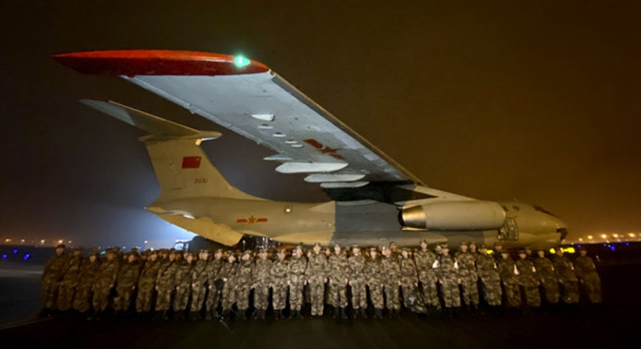 1月24日晚,由陆军军医大学抽调精干医务人员组建的医疗队在重庆江北国际机场停机坪集结,准备连夜驰援武汉。新华社发