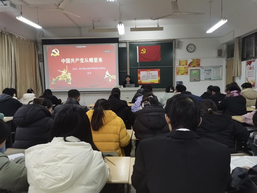 11月29日下午,beat365在线唯一官网党总支副书记韩笑在理工楼2207为学生党支部党员上了一堂题为《中国共产党从哪里来》的党课。