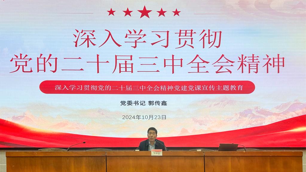 郭传鑫聚焦党的二十届三中全会,从深刻认识党的二十届三中全会的重大意义、深入学习领会习近平总书记在全会上的重要讲话精神、准确理解《中共中央关于进一步全面深化改革、推进中国式现代化的决定》提出的深化改革重大举措等方面进行了传达学习。勉励同学们要坚定不移听党话、跟党走,争做有理想、敢担当、能吃苦、肯奋斗的新时代好青年,在推进强国建设、民族复兴伟业中展现青春作为、彰显青春风采、贡献青春力量,奋力书写为中国式现代化挺膺担当的青春篇章。