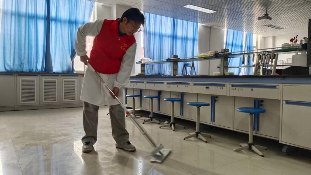 本次系列活动涵盖多项具体服务:支部党员首先对学院各教学与科研实验室进行了全面清洁与整理,为师生创造更为洁净、安全的实验环境;同时,在学院楼内设立了“暖心服务站”,配备雨伞、急救箱等物资,为师生提供日常应急便利;此外,党员们还主动清洗了多间教室的窗帘,有效改善了学习空间的采光与整体氛围。这些举措从师生实际需求出发,于细微处见真情,切实提升了师生的获得感与满意度。