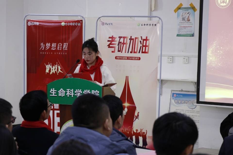 王玉海院长在考研安排讲话中用一首小诗《采桑子·考研动员》表达了对学子们考研后即将离开生科的不舍,对同学们一战成功的美好祝愿,充分肯定了每一位考研学子逐梦前行所付出的汗水和努力,希望考研学子在考研最后的紧要关头,迎难而上、踔厉奋发、勇毅前行。