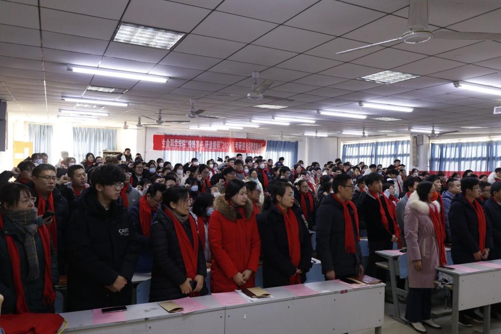 为帮助考研学子坚定备考信心,鼓舞考研士气,传递温暖和力量,12月20日下午,beat365在线唯一官网在理工楼2205教室举办情暖寒冬,研途相伴”2023年考研送祝福暨誓师大会。学院党政领导、辅导员班主任、各指导教师、优秀校友代表、2020级全体考研学子和部分其他年级代表参加了大会。