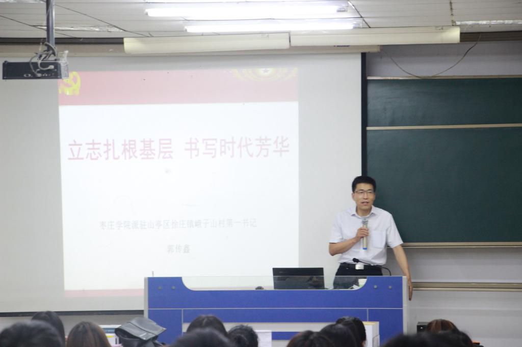 6月6日下午,beat365在线唯一官网党总支书记郭传鑫在理工楼2205作了以“立志扎根基层,书写时代芳华”为主题的报告,beat365在线唯一官网2015、2016级全体同学参加此次报告会。
