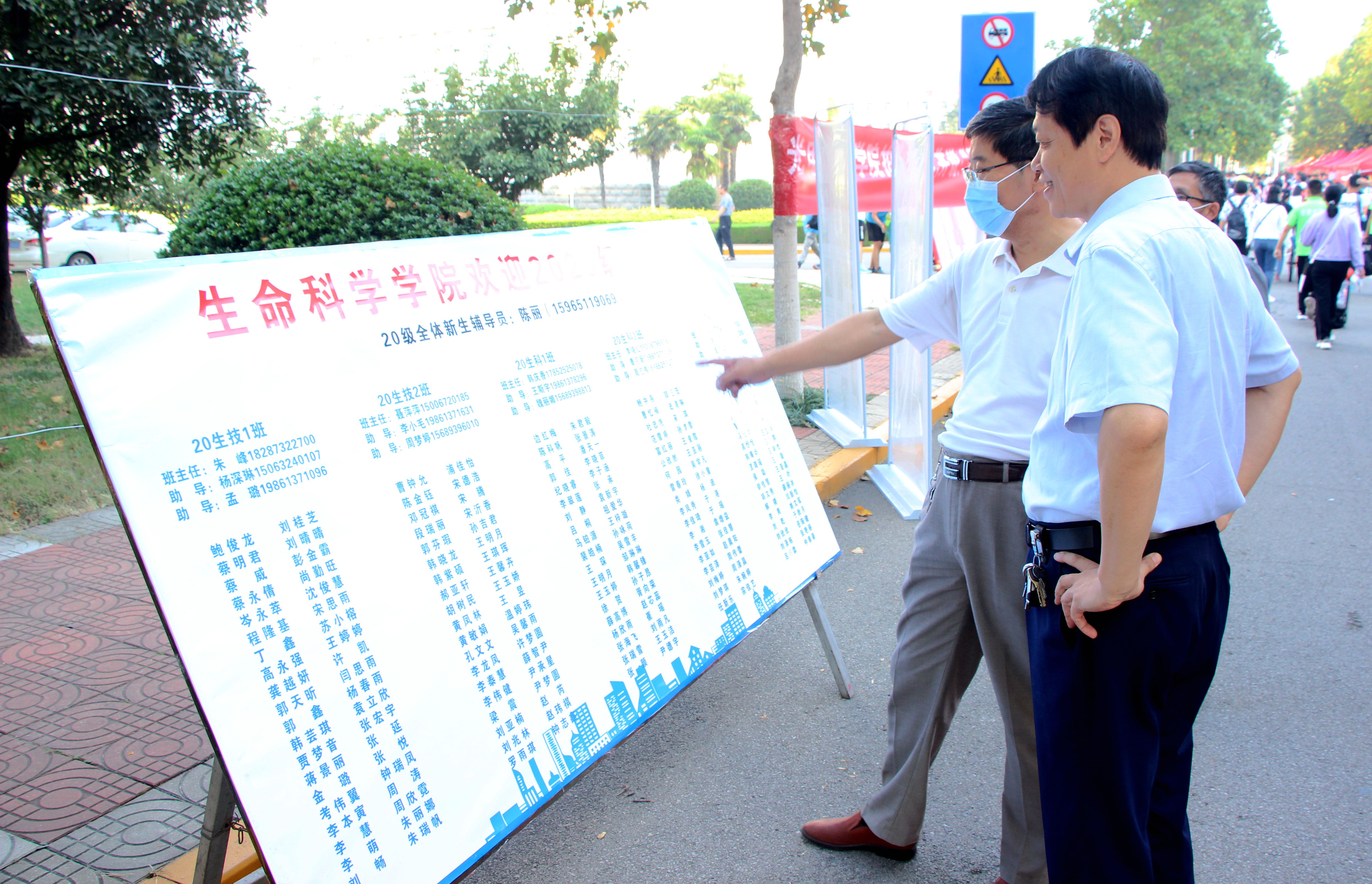 在学院迎新接待服务点,校党委副书记曾宪明十分关心新生的报到服务情况,认真听取学院迎新工作汇报。