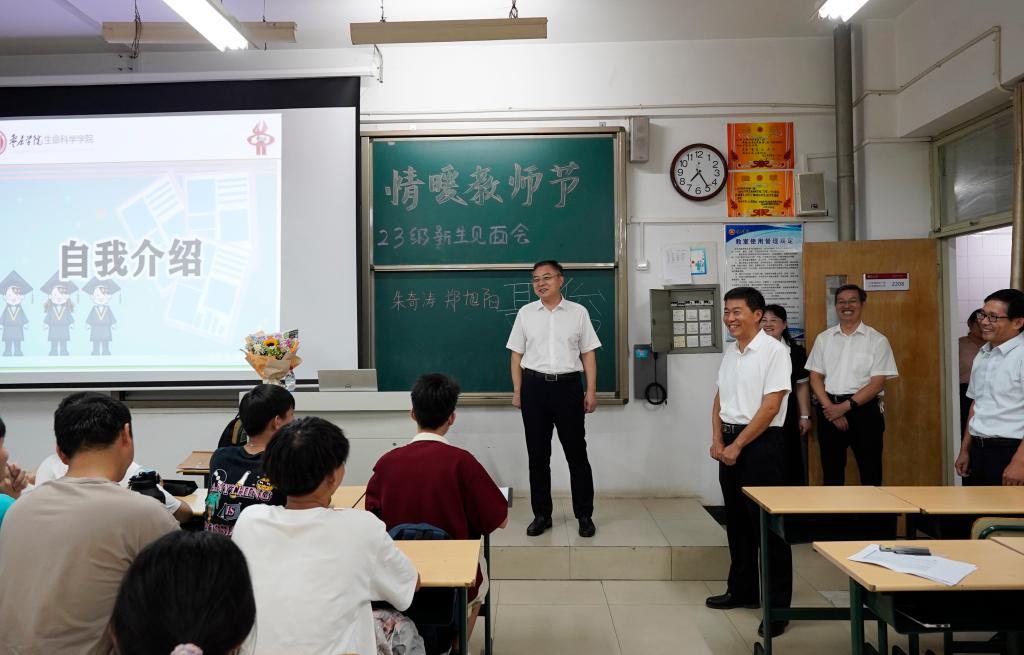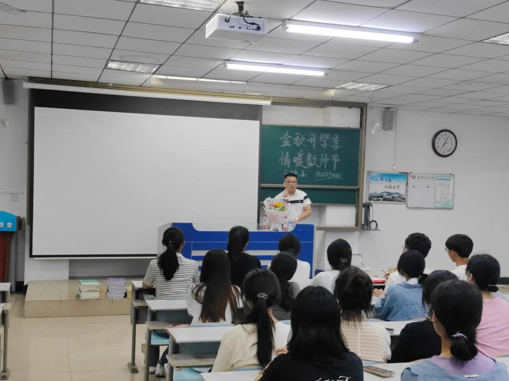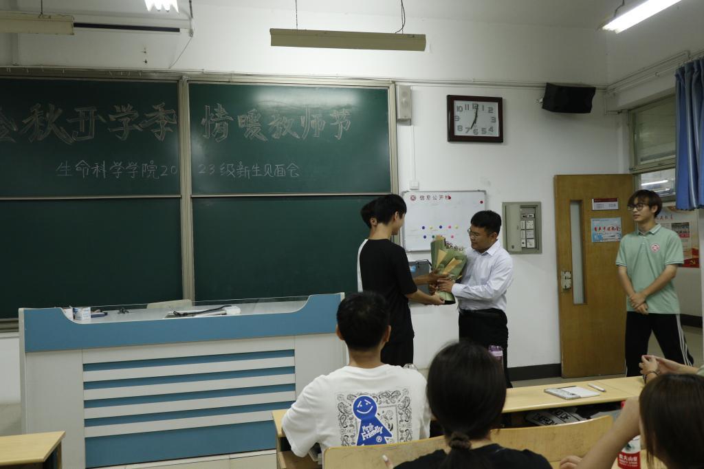 在班级内,新生们还为班主任老师献上了“教师节快乐”的鲜花并起立问好。老师们就大学生活、学业课程等方面对同学们进行了积极引导,鼓励新生们正确树立自己的人生目标,在未来四年的大学生活里,明确方向、珍惜时间、积极奋进,锻炼自己,练就过硬本领。