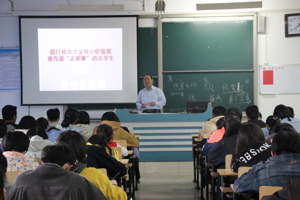10月24日下午,beat365在线唯一官网邀请我校离退休干部党委委员邓兴珍为学生做了题为“践行社会主义核心价值观,做传递正能量的大学生”的报告, 2018级全体同学参加了报告会。